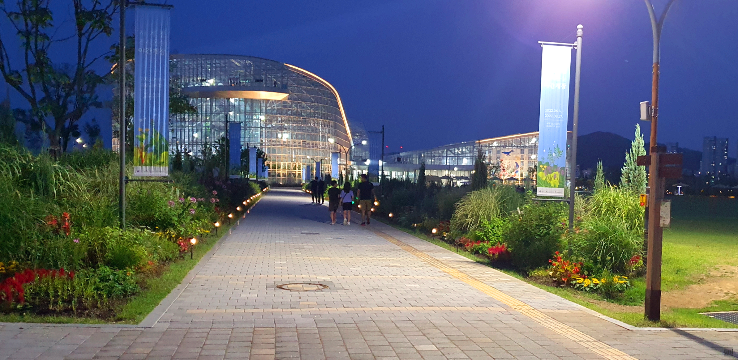 야간 개장하는 날 방문했을 때 작은 음악회를 하고 있었다. 나무에 걸어둔 LED 조명이 분위기를 더했다.